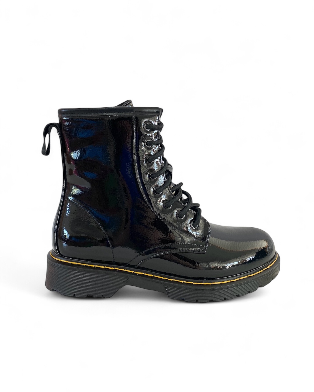 Αρβυλάκια από συνθετικό λουστρίνι δέρμα με φερμουάρ στο πλάι και τρακτερωτή σόλα. Με υφασμάτινη επένδυση τύπου γούνας εσωτερικά.