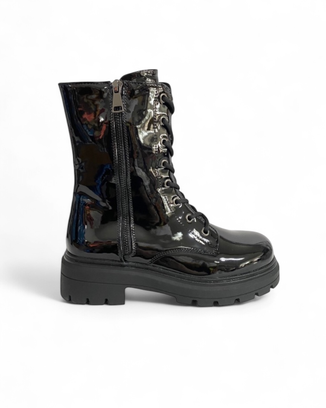 Γυναικεία λουστρίνι αρβυλάκια με διακοσμητικό φερμουάρ στην εξωτερική τους πλευρά και λειτουργικό φερμουάρ στην εσωτερική. Με τρακτερωτή αντιολισθητική σόλα.