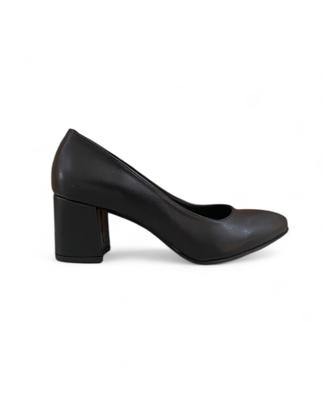Γόβες μαύρες μυτερές με χοντρό τακούνι