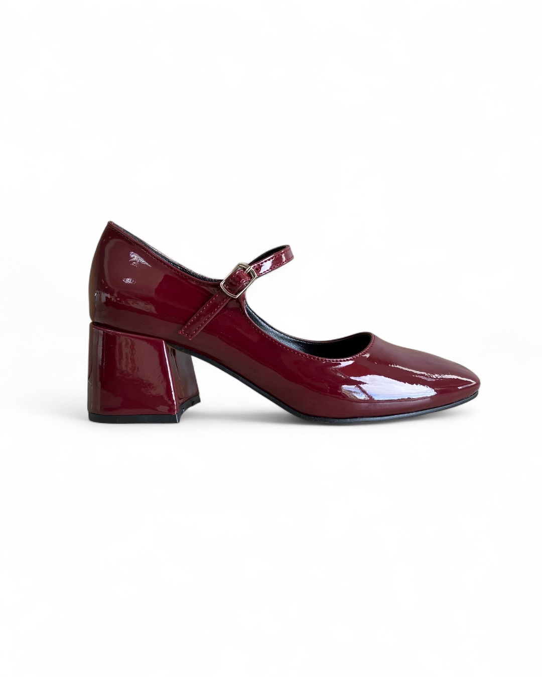 Γόβες Μπορντό Λουστρίνι με Μπαρέτα με Χοντρό Τακούνι