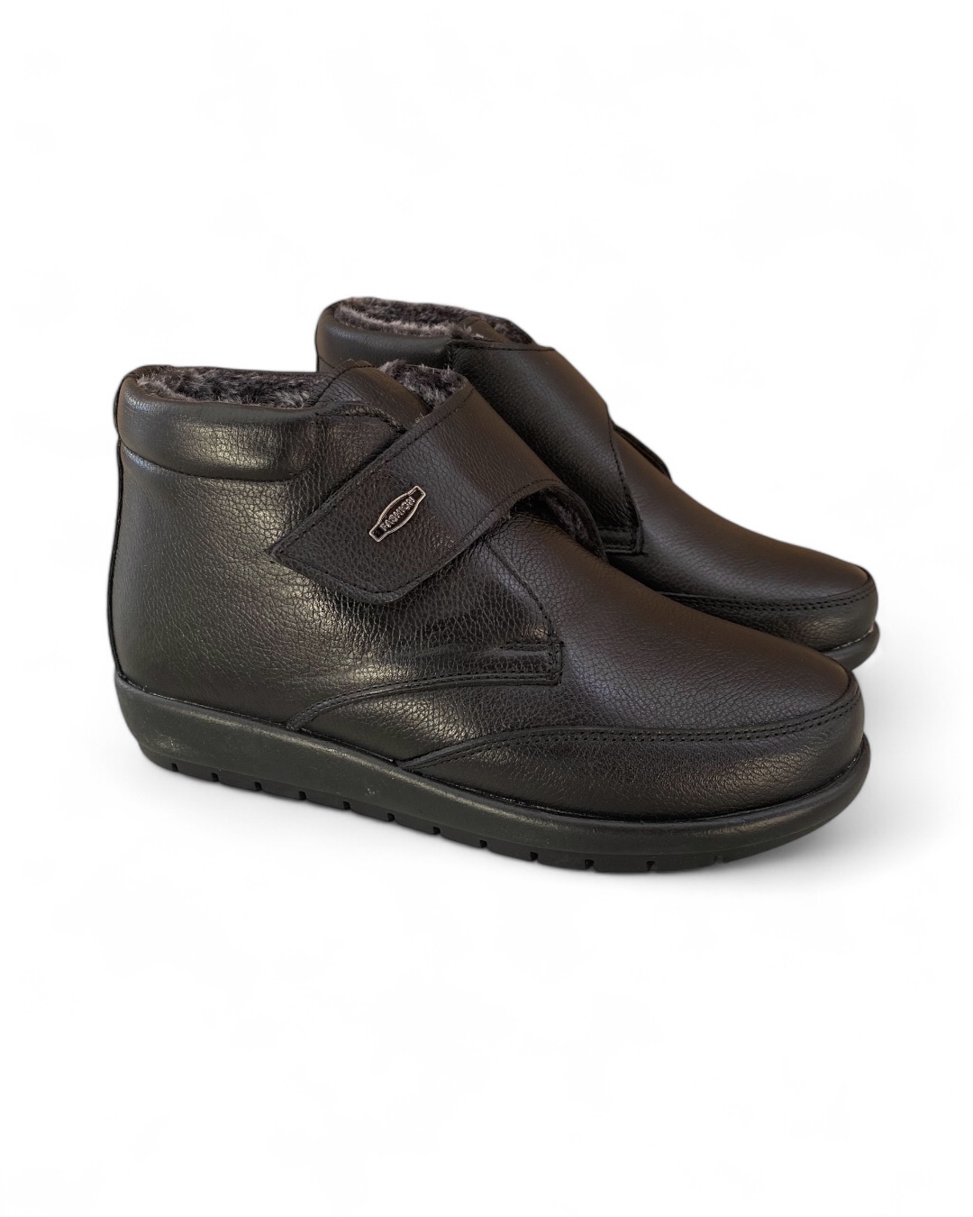 Ανατομικά μποτάκια από γνήσιο δέρμα και επένδυση γούνα. Αυτοκόλλητο κούμπωμα για εύκολη εφαρμογή και χρήση. Διαθέτουν αντιολισθητική σόλα από λάστιχο που προσφέρει σταθερότητα και μαλακό πάτημα.