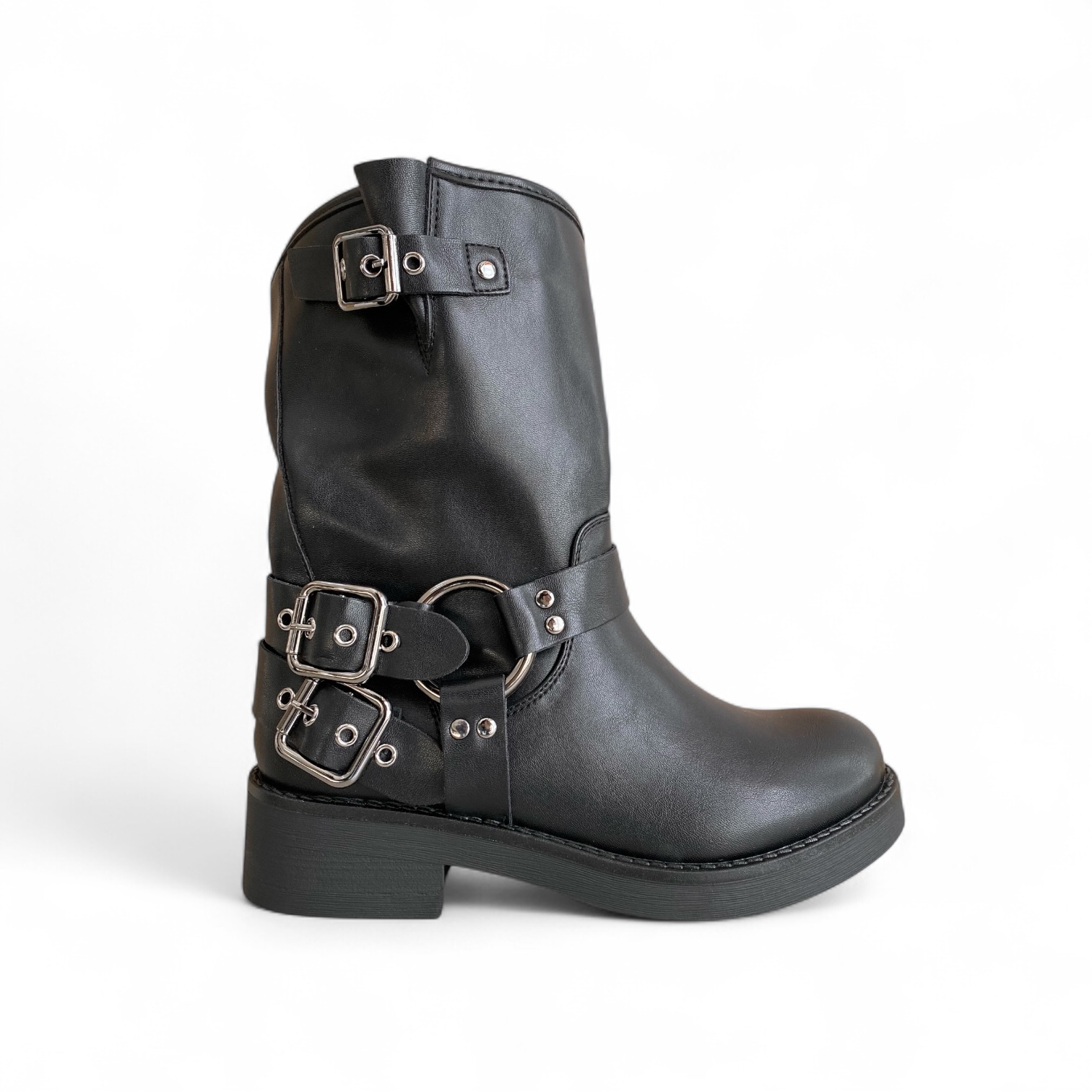 Τα biker μποτάκια αποτελούν την ιδανική επιλογή για να ένα άνετο και στιλάτο street style που θα σας κάνει να ξεχωρίσετε!Με δικαοσμητικές μεταλλικές αγκράφες και φερμουάρ στην εσωτερική πλευρά για εύκολη εφαρμογή.