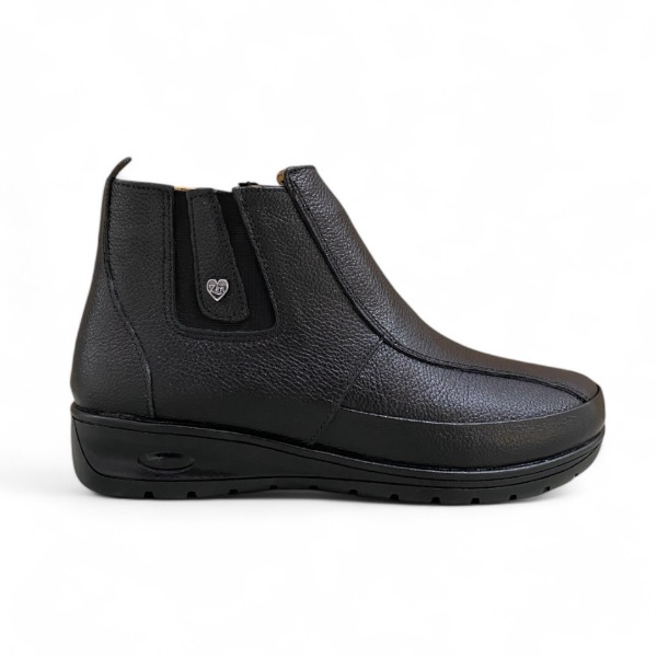 Μποτάκι δερμάτινο ανατομικό με λάστιχο φερμουάρ και μεταλλική λεπτομέρεια