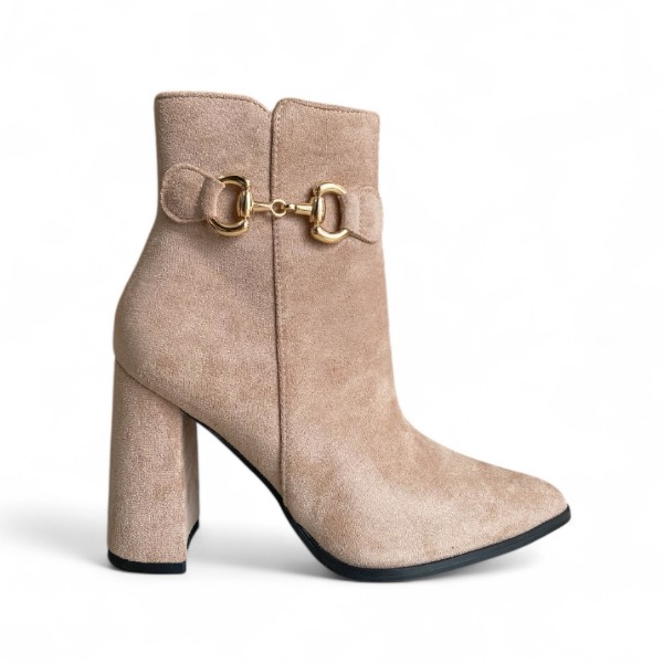 Μποτάκι καστόρ μυτερό με φερμουάρ, χρυσή λεπτομέρεια και χοντρό τακούνι