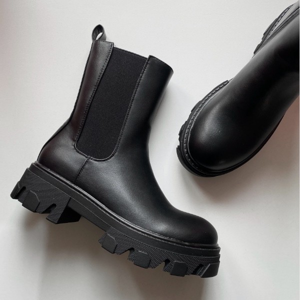 Γυναικεία μποτάκια με λάστιχο στην εξωτερική τους πλευρά και φερμουάρ στην εσωτερική και τρακτερωτή σόλα.