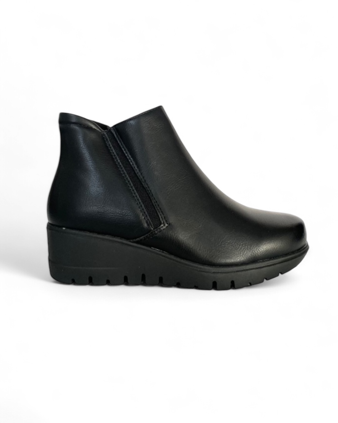 Γυναικεία χαμηλά ματ μποτάκια με μονοκόμματη σόλα, φερμουάρ στην εσωτερική τους πλευρά και λάστιχο στην εξωτερική.