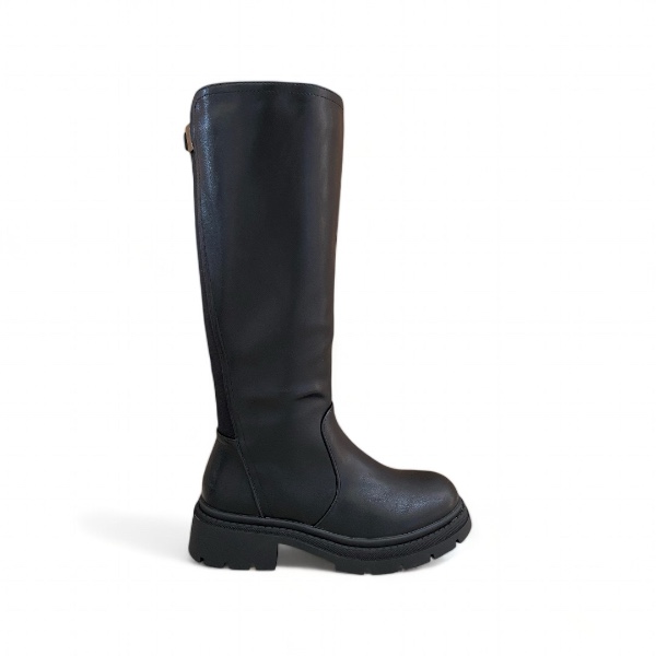 Γυναικείες μπότες με στρογγυλή μύτη, φερμουάρ στην εσωτερική τους πλευρά, λάστιχο στην πίσω πλευρά με μεταλλική λεπτομέρεια στο επάνω μέρος και τρακτερωτή σόλα.