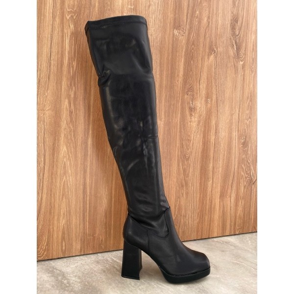 Μπότα πάνω από το γόνατο με ψηλό χοντρό τακούνι και φιάπα