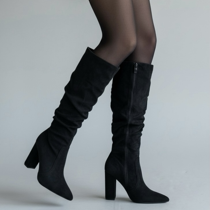 - Μπότες Καστόρ Μυτερές με Χοντρό Τακούνι