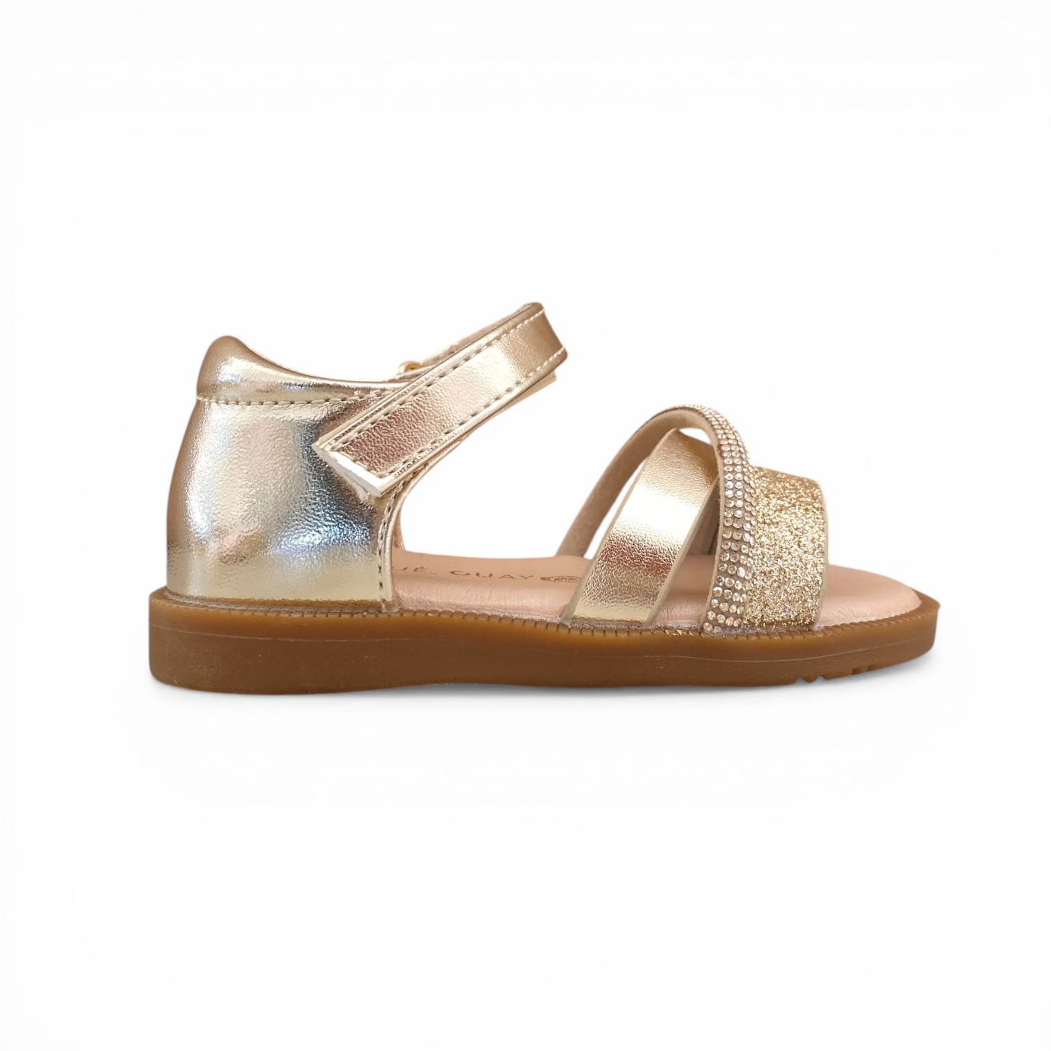 - Παιδικά πέδιλα για κορίτσια με κλειστή φτέρνα αυτοκόλλητο κούμπωμα στρας και γκλίτερ Λευκό Ροζ Χρυσό