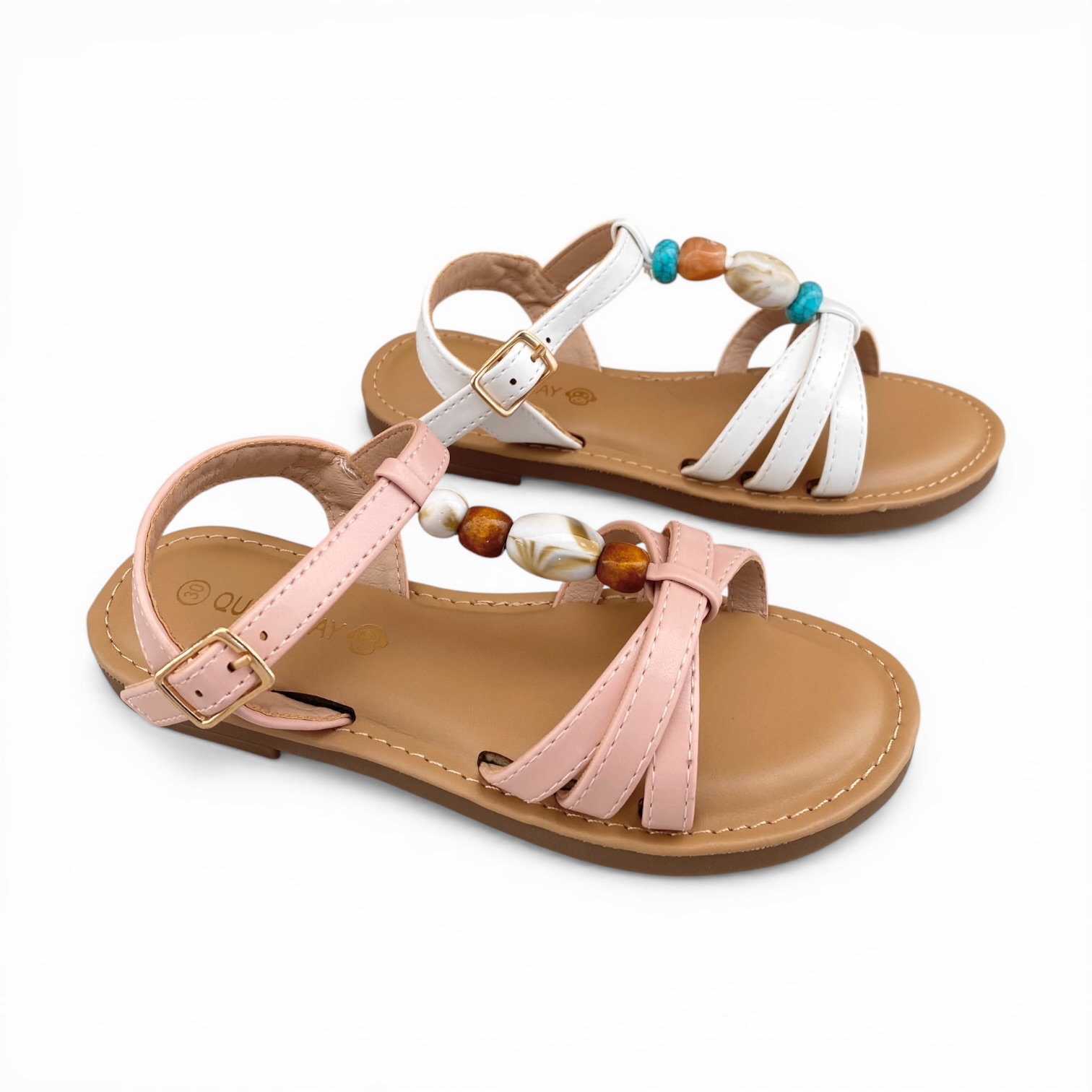 - Παιδικά πέδιλα για κορίτσια με λουράκια και χάντρες Λευκό Ροζ