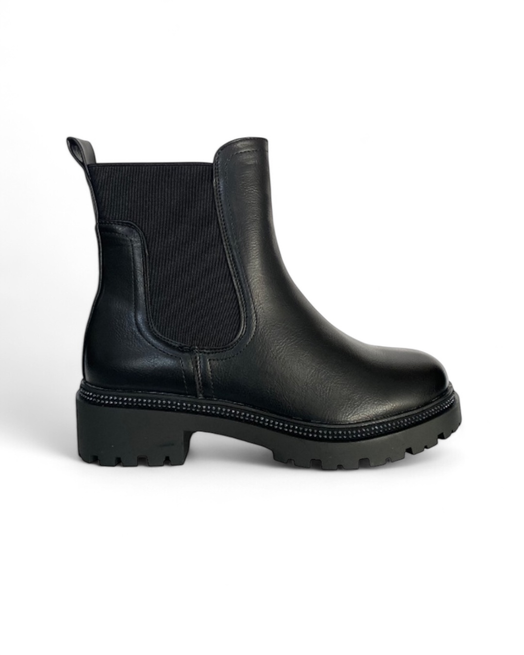 Γυναικεία Chelsea boots με λάστιχο στην εσωτερική και την εξωτερική τους πλευρά και τρακτερωτή σόλα με σχέδιο στρας.
