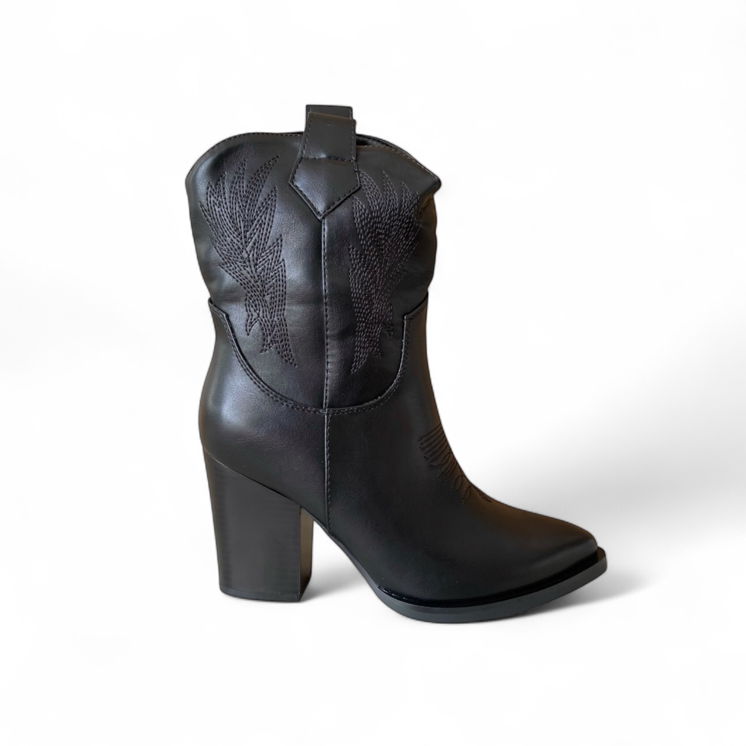 Γυναικεία cowboy μποτάκια με διακοσμητικές ραφές και τακούνι μεσαίου ύψους σε ιδιαίτερο σχήμα που θα σας κάνει να ξεχωρίσετε σε κάθε σας εμφάνιση χωρίς όμως να χάσετε την άνεσ'η σας!