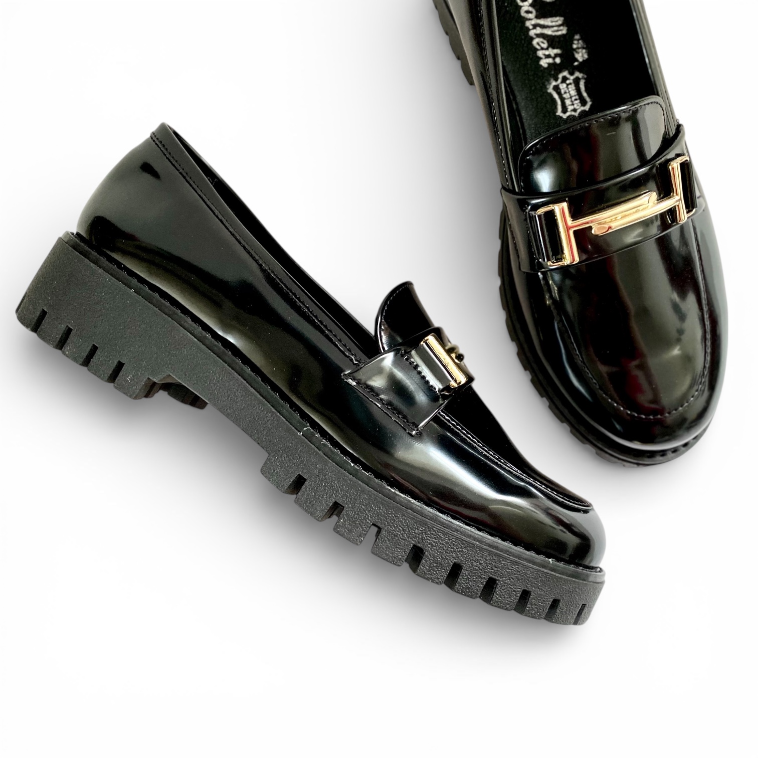 Loafers από δέρμα φλωρεντίκ και δερμάτινο εσωτερικό πάτο, Ελληνικής κατασκευης της εταιρίας Si Bolleti.