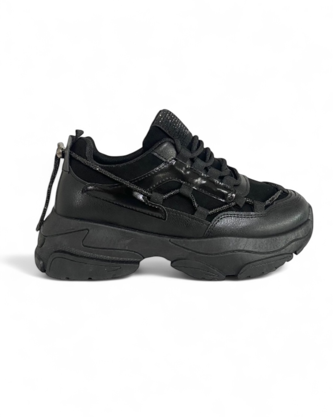 Sneakers με chunky σε μοντερνο σχεδιασμό. Συνδυασμός από καστόρ και συνθετικό δέρμα με διακοσμητικό κορδόμι απο στρας που χαρίζει λάμψη.